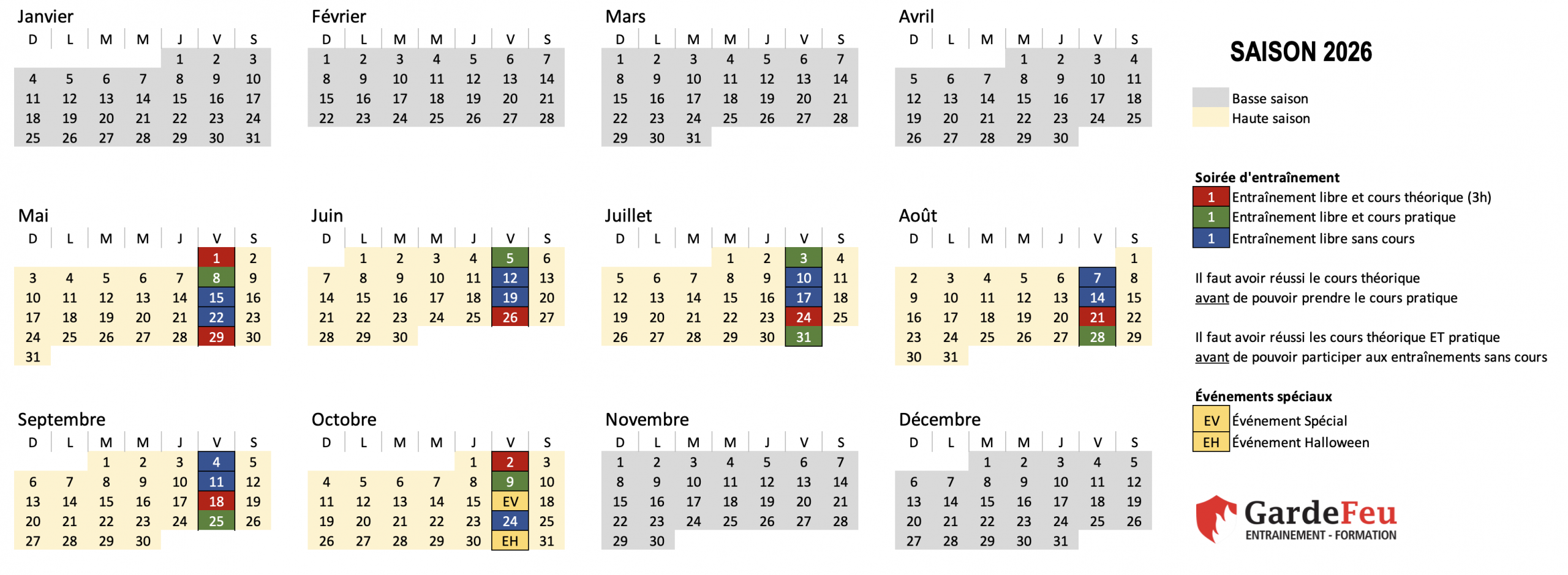 - Disponible selon le calendrier des événements GardeFeu. Non disponible pour les cours avec instructeur privé. Doit être pris avec un membership entraînement..